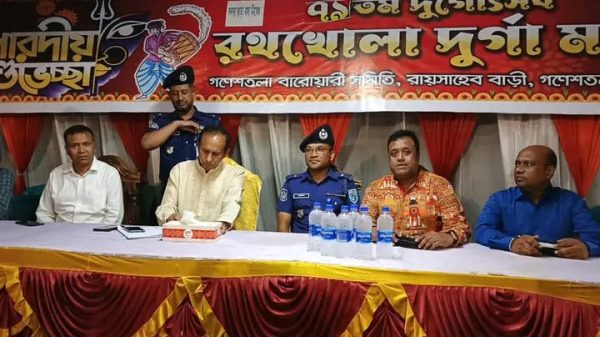 মো সালাম রাব্বানী স্টাফ রিপোর্টার,দিনাজপুর শারদীয় দুর্গা উৎসব উপলক্ষে গনেশতলা বারোয়ারী সমিতি রায়সাহেব বাড়ির রথখোলা দুর্গা মন্দিরের মন্ডপ পরিদর্শন করেছেন রংপুর রেঞ্জের রেঞ্জ ডিআইজি মোঃ আমিনুল ইসলাম। বুধবার (১ অক্টোবর