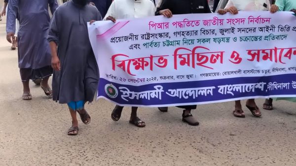 মোঃ নাছির উদ্দীন দীঘিনালা খাগড়াছড়ি । খাগড়াছড়ির দীঘিনালায় ইসলামী আন্দোলন বাংলাদেশ পিআর পদ্ধতি ও জাতীয় সংসদ নির্বাচন, জুলাই সনদের আইনী ভিত্তি এবং পার্বত্য চট্টগ্রাম নিয়ে ষড়যন্ত্রের প্রতিবাদে বিক্ষোভ মিছিল ও