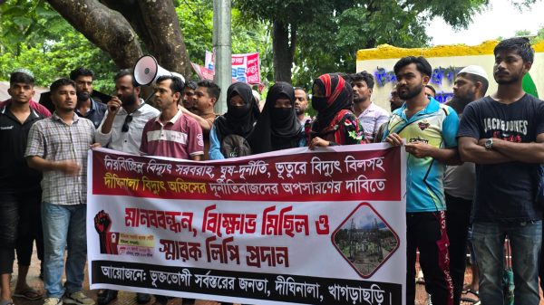 মোঃ নাছির উদ্দীন দীঘিনালা খাগড়াছড়ি খাগড়াছড়ির দীঘিনালা উপজেলায় বিদ্যুৎ অফিসের দুর্নীতি, নিয়মিত ঘুষ বাণিজ্য, বিদ্যুৎ বিভ্রাট এবং ভুয়া বিদ্যুৎ বিলের বিরুদ্ধে বিক্ষোভ মিছিল ও মানববন্ধন অনুষ্ঠিত হয়েছে। আজ রবিবার (২৭