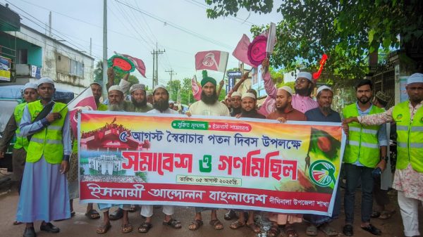 মোঃ নাছির উদ্দীন দীঘিনালা খাগড়াছড়ি । গণঅদ্ভুত্থান দিবসের এক বছর পূর্তি উপলক্ষে ইসলামী আন্দোলন বাংলাদেশ দীঘিনালা থানার উদ্যোগে এক আনন্দ মিছিল অনুষ্ঠিত হয়েছে। আজ মঙ্গলবার (৫ আগস্ট) সকাল ১০টায় দীঘিনালা