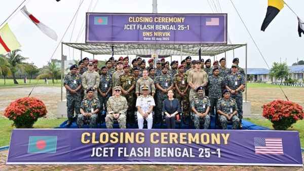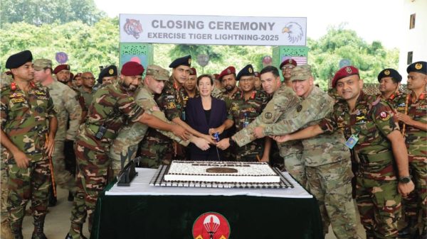 বিজয় চৌধুরী, বিশেষ প্রতিনিধি বাংলাদেশ সেনাবাহিনী ও যুক্তরাষ্ট্রের প্যাসিফিক আর্মি কমান্ড (USARPAC)-এর যৌথ অংশগ্রহণে অনুষ্ঠিত ‘এক্সারসাইজ টাইগার লাইটনিং (টিএল)-২০২৫’ এর সমাপনী অনুষ্ঠান আজ জালালাবাদ সেনানিবাস, সিলেটে অনুষ্ঠিত হয়। অনুষ্ঠানে প্রধান