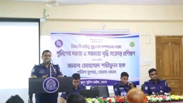 হাসান হৃদয় দৈনিক দক্ষিণের অপরাধ সংবাদ রবিবার (০৫ অক্টোবর) সকাল ৯ ঘটিকায় ভোলা জেলা পুলিশ লাইন্সে ০৩ দিন মেয়াদী নির্বাচনী দায়িত্ব সুষ্টুভাবে সম্পাদনের লক্ষ্যে কনস্টেবল হতে ইন্সপেক্টর পদমর্যাদার পুলিশ সদস্যদের