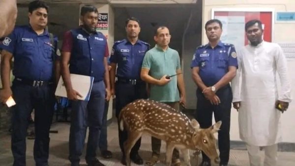 হাসান হৃদয় লালমোহন ভোলার লালমোহন উপজেলায় মেঘনা নদীর জোয়ারের পানিতে ভেসে আসা একটি চিত্রা হরিণ উদ্ধার করেছে উচ্ছুক জনতা ও পুলিশ। শনিবার সন্ধ্যায় উপজেলার ধলীগৌরনগর ইউনিয়নের বাতিরখাল এলাকার মেঘনা নদীর