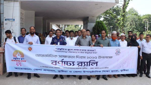 মোঃ মনিরুল ইসলাম সদর উপজেলা প্রতিনিধি কুষ্টিয়া কুষ্টিয়ায় আন্তর্জাতিক সাক্ষরতা দিবস পালিত হয়েছে এ উপলক্ষ্যে সোমবার সকালে জেলা প্রশাসকের কার্যালয়ের সামনে থেকে একটি বর্ণাঢ্য র্যালি বের হয়। র্যালি শেষে জেলা