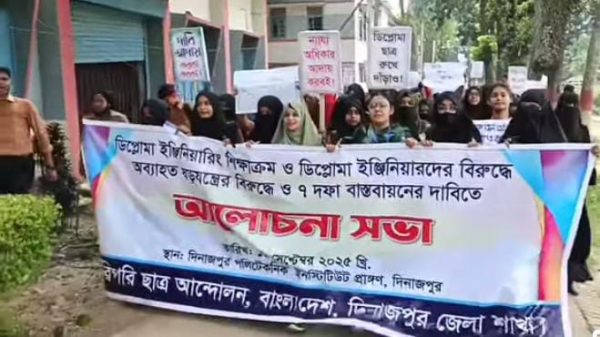 মো সালাম রাব্বানী দিনাজপুর প্রতিনিধি ডিপ্লোমা ইঞ্জিনিয়ারিং শিক্ষাক্রম ও ডিপ্লোমা ইঞ্জিনিয়ারদের বিরুদ্ধে অব্যাহত ষড়যন্ত্রের প্রতিবাদে এবং ৭ দফা বাস্তবায়নের দাবিতে দিনাজপুরে আলোচনা সভা অনুষ্ঠিত হয়েছে। আজ বুধবার সকালে দিনাজপুর পলিটেকনিক