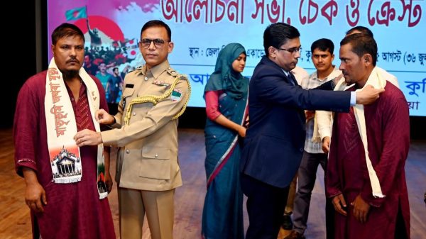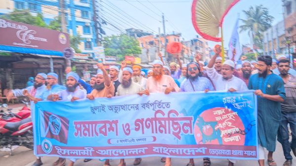 বিজয় চৌধুরী (বিশেষ প্রতিনিধি,ঢাকা) আজ জাতীয় সংসদ ভবনের দক্ষিণ প্লাজায় আয়োজিত এক বিশেষ ও মর্যাদাপূর্ণ অনুষ্ঠানে প্রধান উপদেষ্টা প্রফেসর মুহাম্মদ ইউনূস ঐতিহাসিক জুলাই ঘোষণাপত্র পাঠ করেন। অনুষ্ঠানে উপস্থিত ছিলেন জাতীয় নেতৃবৃন্দ, শহীদ পরিবারের সদস্যবৃন্দ, জুলাই মাসে আহত বীর মুক্তিযোদ্ধারা, দেশের বিভিন্ন রাজনৈতিক দলের নেতৃবৃন্দ এবং বিদেশি কূটনৈতিক প্রতিনিধিরা। ঘোষণাপত্র পাঠের মাধ্যমে জাতির ইতিহাস, আত্মত্যাগ ও