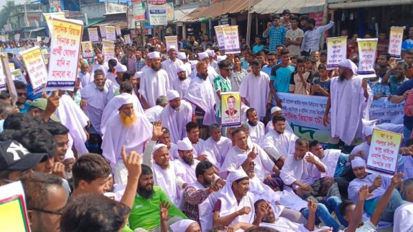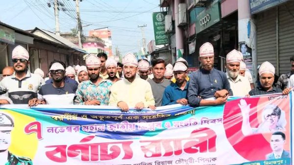 মো:সালাম রাব্বানী স্টাফ রিপোর্টার,দিনাজপুর আসন্ন ত্রয়োদশ জাতীয় সংসদ নির্বাচনে দিনাজপুর-২ (বিরল–বোচাগঞ্জ) আসনে বিএনপি’র প্রার্থীতা পরিবর্তনের দাবিতে ফুঁসে উঠেছে দলীয় নেতা-কর্মীরা। কাফনের কাপড় পরে মানববন্ধন, সড়ক অবরোধ, বিক্ষোভ মিছিল ও সমাবেশের মাধ্যমে তারা ক্ষোভ প্রকাশ করেছেন। শুক্রবার (৭ নভেম্বর) সকাল ১০টা থেকে দুপুর ১২টা পর্যন্ত বিরল উপজেলার প্রাণকেন্দ্র স্থলবন্দর মোড়ে বিএনপি ও অঙ্গসংগঠনের নেতা-কর্মী, এবং মনোনয়ন